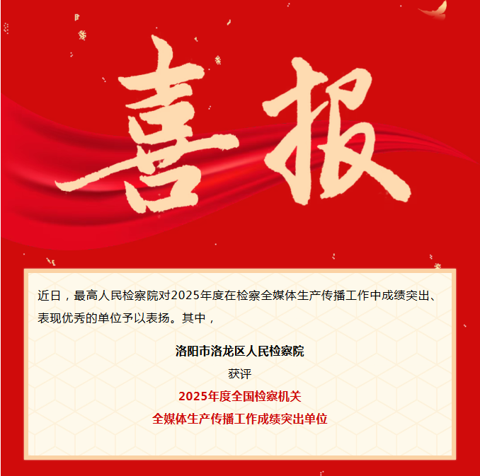 洛阳市洛龙区人民检察院获评2025年度全国检察机关全媒体生产传播工作成绩突出单位