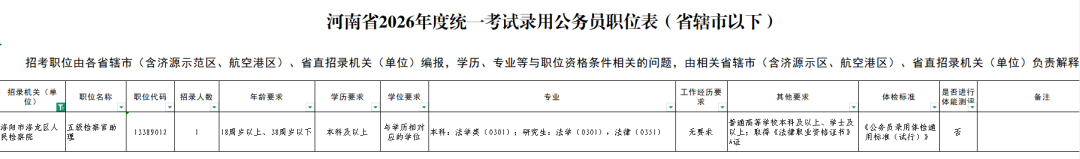 近日,河南省2026年统一考试录用公务员公告已发布,洛龙区人民检察院现面向社会招录1名公务员。
