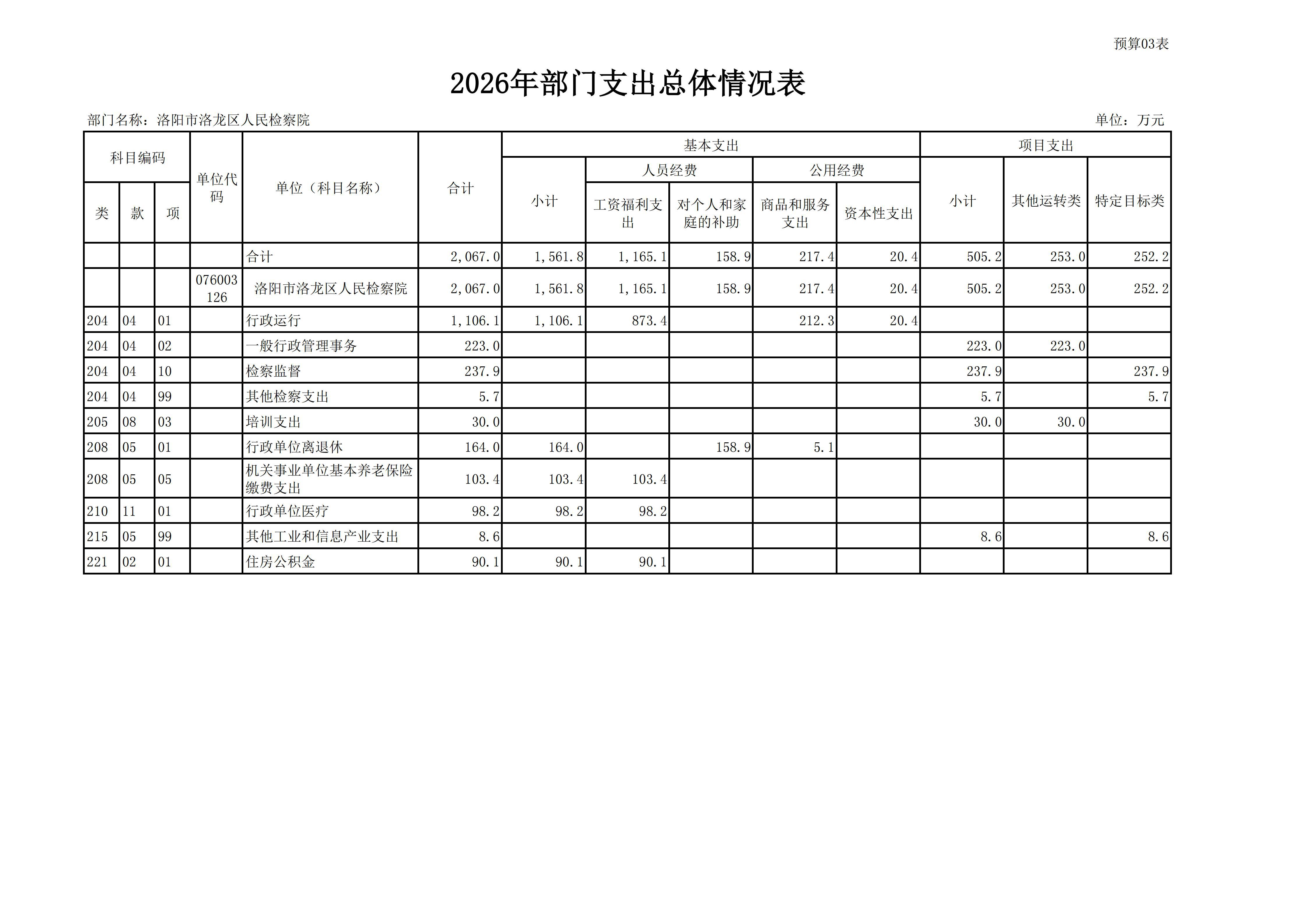 附件:洛阳市洛龙区人民检察院2026年部门预算表